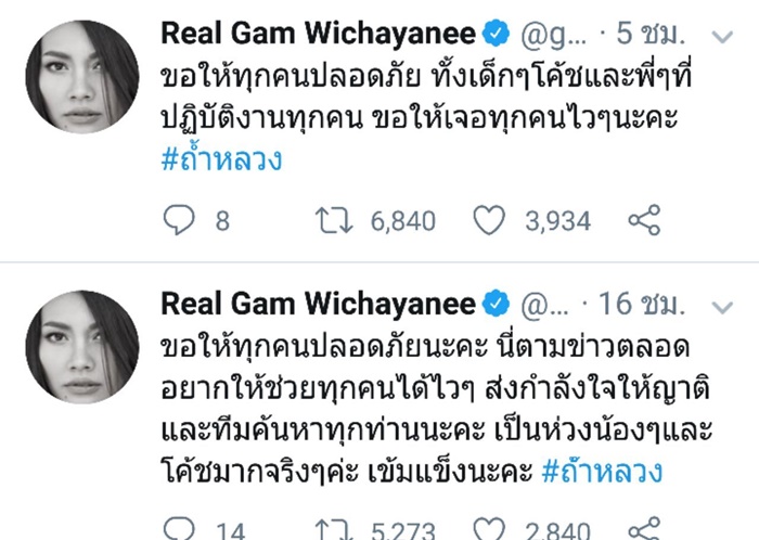 ล่าสุด (25 มิถุนายน 2561) ในทุกช่องทางโซเชียลมีเดียก็มีคนออกมาแสดงความคิดเห็นพร้อมทั้งให้กำลังใจผู้สูญหายและทีมค้นหาถึงเรื่องนี้ผ่านทาง #ถ้ำหลวง ส่งผลให้แฮชแท็กดังกล่าวติดเทรนด์ทวิตเตอร์อย่างรวดเร็ว รวมไปถึงคนบันเทิง อาทิ โอ๊ต ปราโมทย์, โอปอล์ ปาณิสรา, บุ๋ม ปนัดดา, กุ๊บกิ๊บ สุมณทิพย์, แก้ม วิชญาณี, ดีเจต้นหอม ศกุนตลา, เป้ย ปานวาด รวมไปถึง สาว ๆ จากวง BNK48 อย่าง มิวสิค, อร, น้ำหนึ่ง, ซัทจัง ฯลฯ ก็ได้ออกมาโพสต์ข้อความผ่านทั้งทางอินสตาแกรมและทวิตเตอร์เพื่อให้กำลังใจให้กับทั้ง 13 คน และทีมช่วยเหลือที่ต้องทำงานอย่างหนักด้วยเช่นกัน พร้อมอธิษฐานขอให้ทุกคนแคล้วคลาดปลอดภัย ตามหาผู้สูญหายเจอและพากลับออกมาได้อย่างปลอดภัยทุกคน